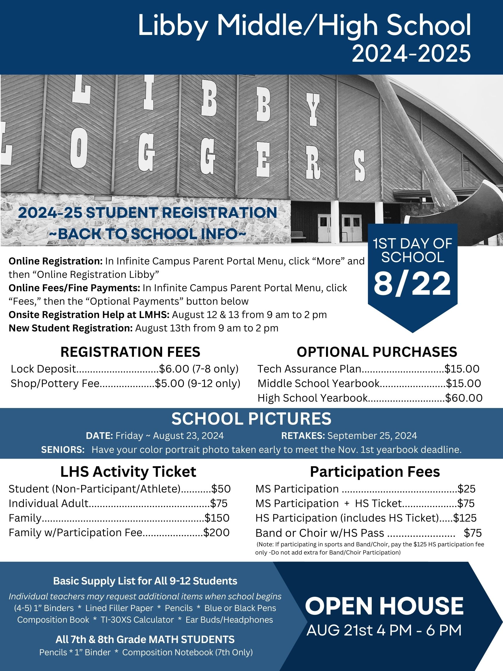 IMPORTANT UPDATE: The first day of school was moved to Thursday, August 22, 2024. LMHS Open House was moved to August 21st.